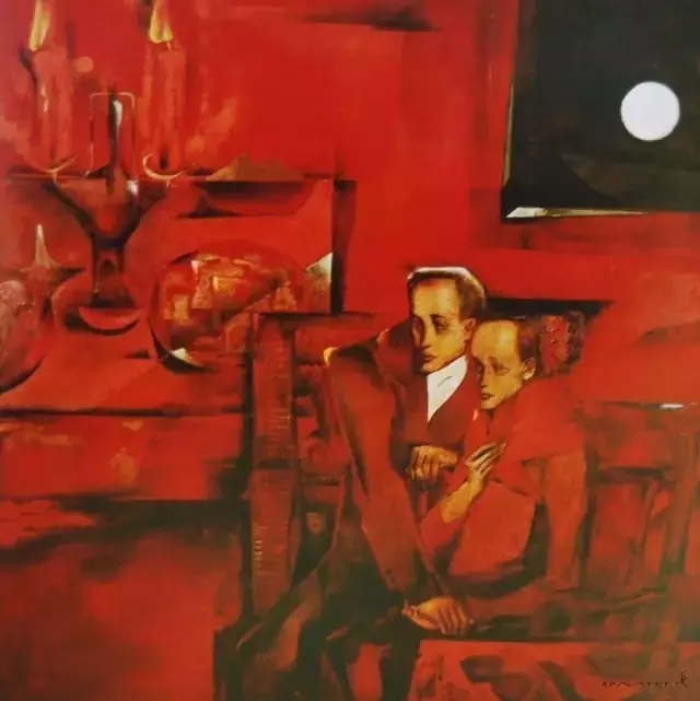 陳立德漆畫作品《皓月紅燭》