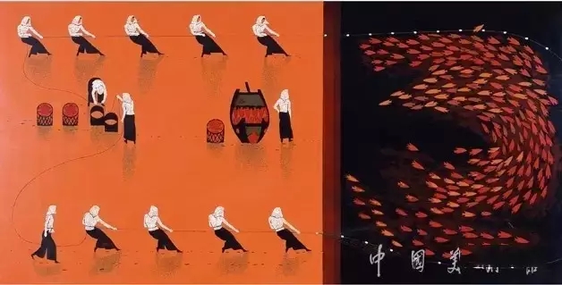 鄭益坤漆畫作品《金魚》系列