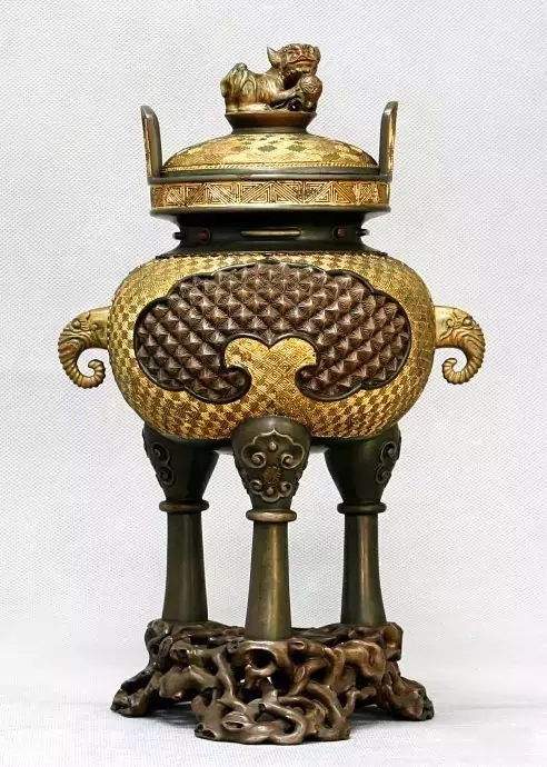 《盤根三足獅鈕鼎爐》