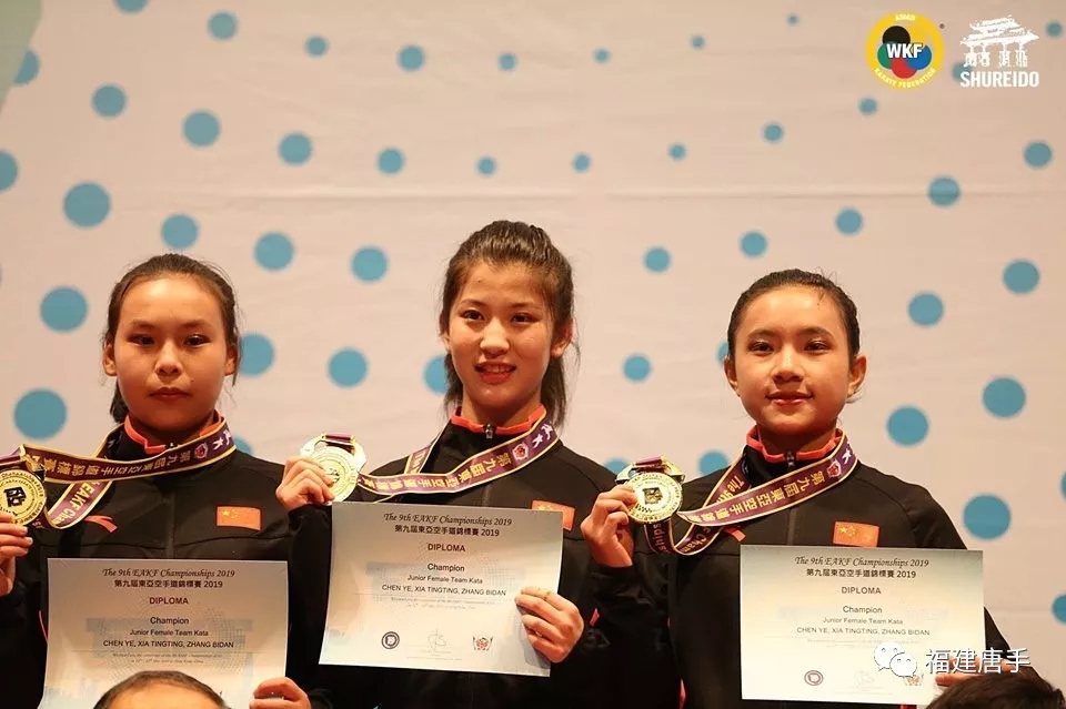 2019年5月9日-12日在香港舉行的第9屆東亞空手道錦標(biāo)賽中,福建拓??帐值狸?duì)選手陳曄和北京體育大學(xué)隊(duì)友夏婷婷、張碧丹代表中國(guó)隊(duì)決賽Vs中華臺(tái)北隊(duì),奪取青年女子團(tuán)體型冠軍。