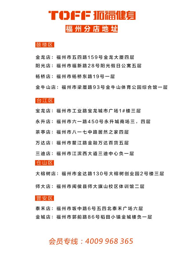 一、五四北店原定1月25日開業(yè)(1月26日已暫停),金龍店、陽光店、寶龍店、楊橋店、永升店、萬達店、大榕樹店、金牛山店原定1月29日開業(yè),三迪店、金城店原定1月28日開業(yè),茶亭店原定2月1日開業(yè),師大店原定2月3日開業(yè),現(xiàn)改為等福州市體育局發(fā)布恢復(fù)開放時間后另行通知開業(yè)時間。暫停營業(yè)時間將免費同等延長會員會籍時間。