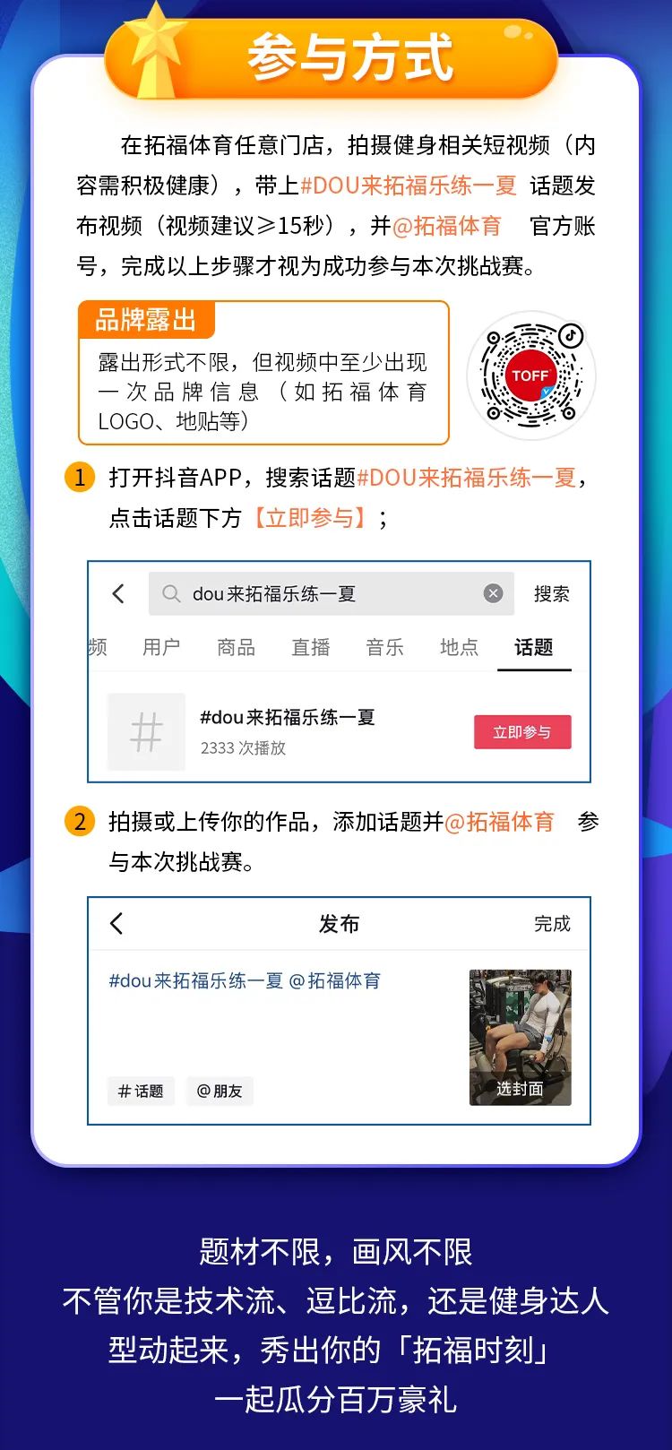 > 拓福體育|#dou來拓福樂練一夏,秀出你的運(yùn)動時刻,一起瓜分百萬豪禮!